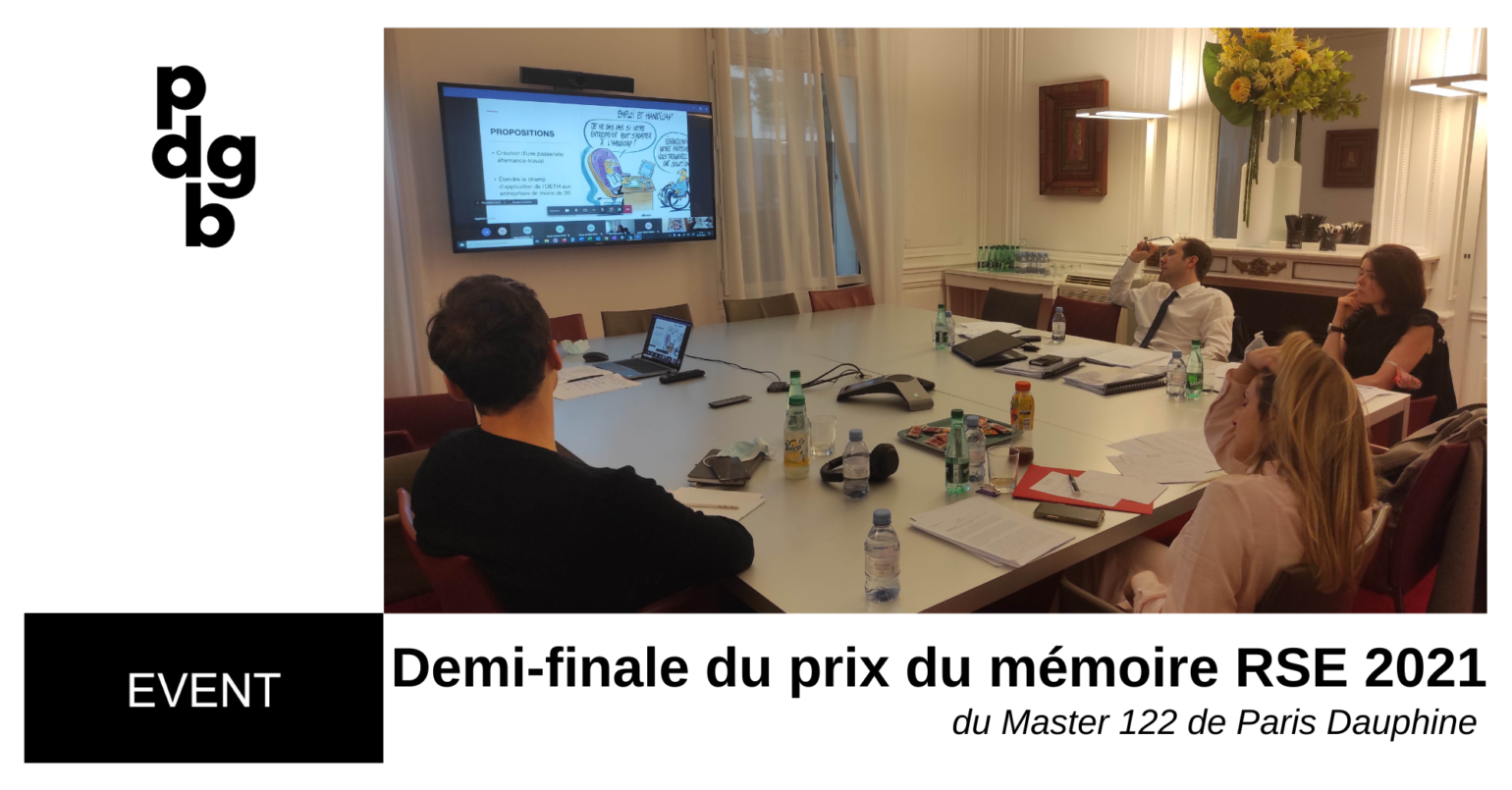 PDGB est honoré d’avoir accueilli pour la 3e année la demi-finale du prix du mémoire RSE du Master122 de Paris Dauphine sous la Direction du Professeur Pasqualini
