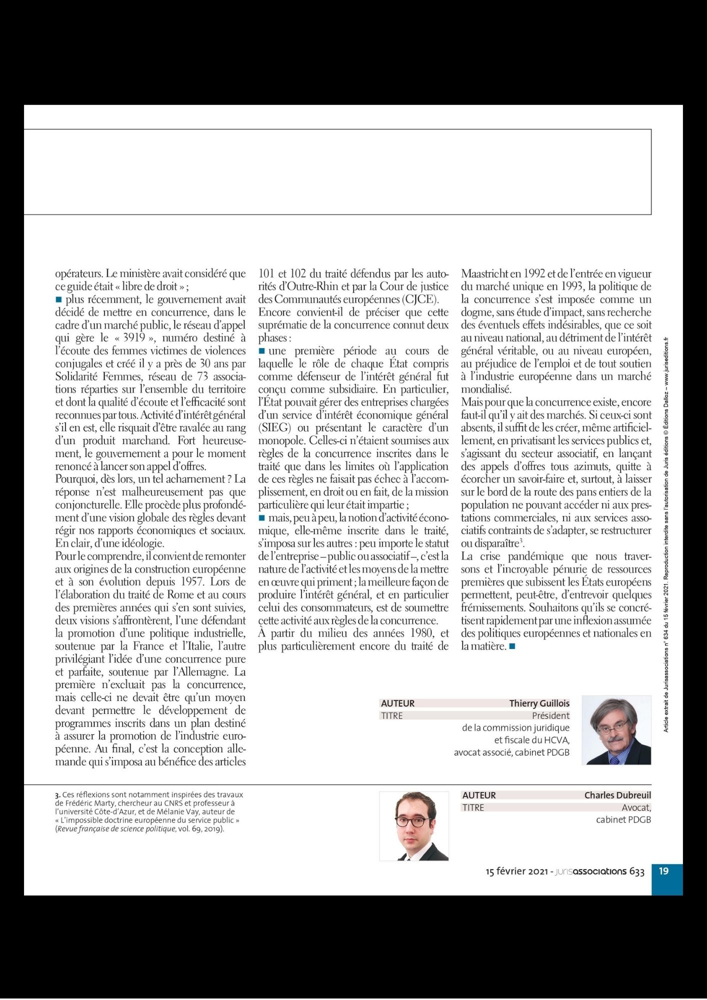 Thierry Guillois et Charles Dubreuil livrent leurs réflexions sur la notion de concurrence intervenant en économie sociale et solidaire, dans un dossier de la revue Juris associations.