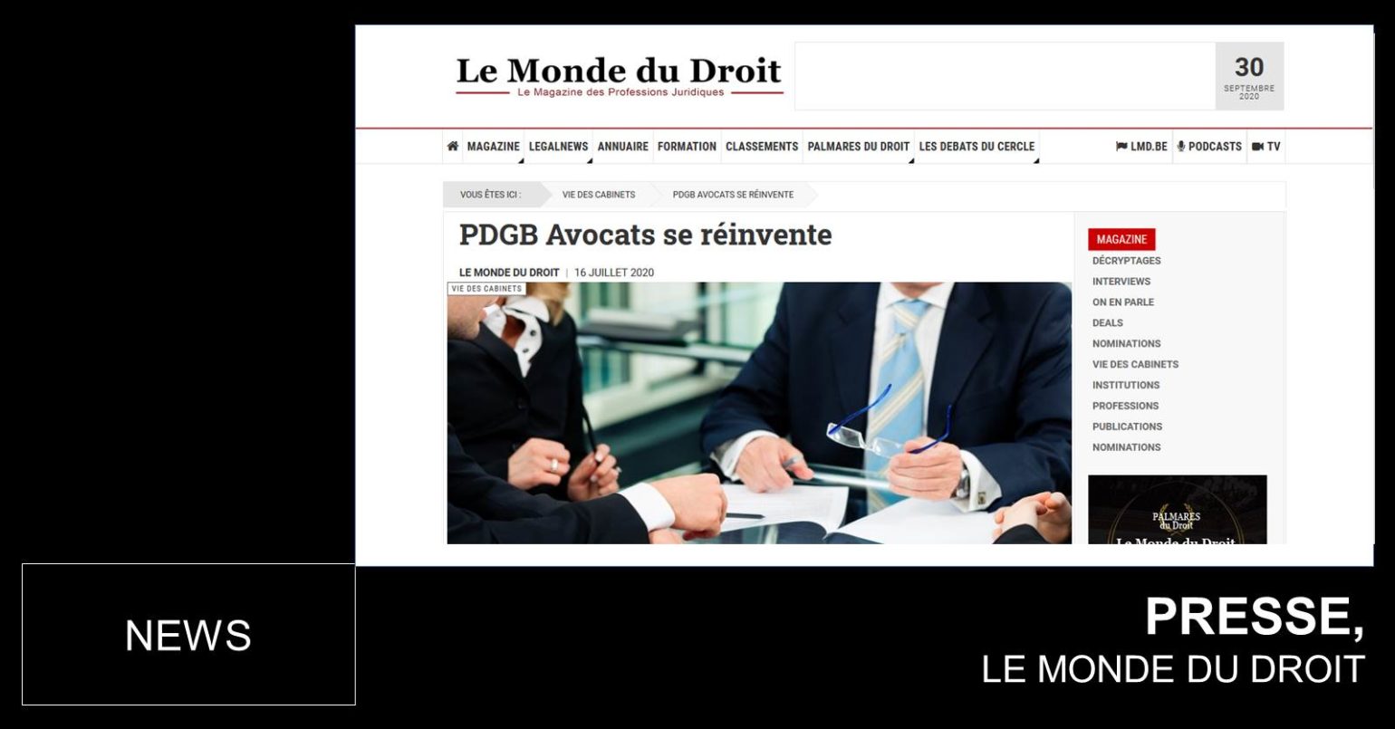 Accueil > Actualités > Le Monde du Droit, PDGB Avocats se réinvente