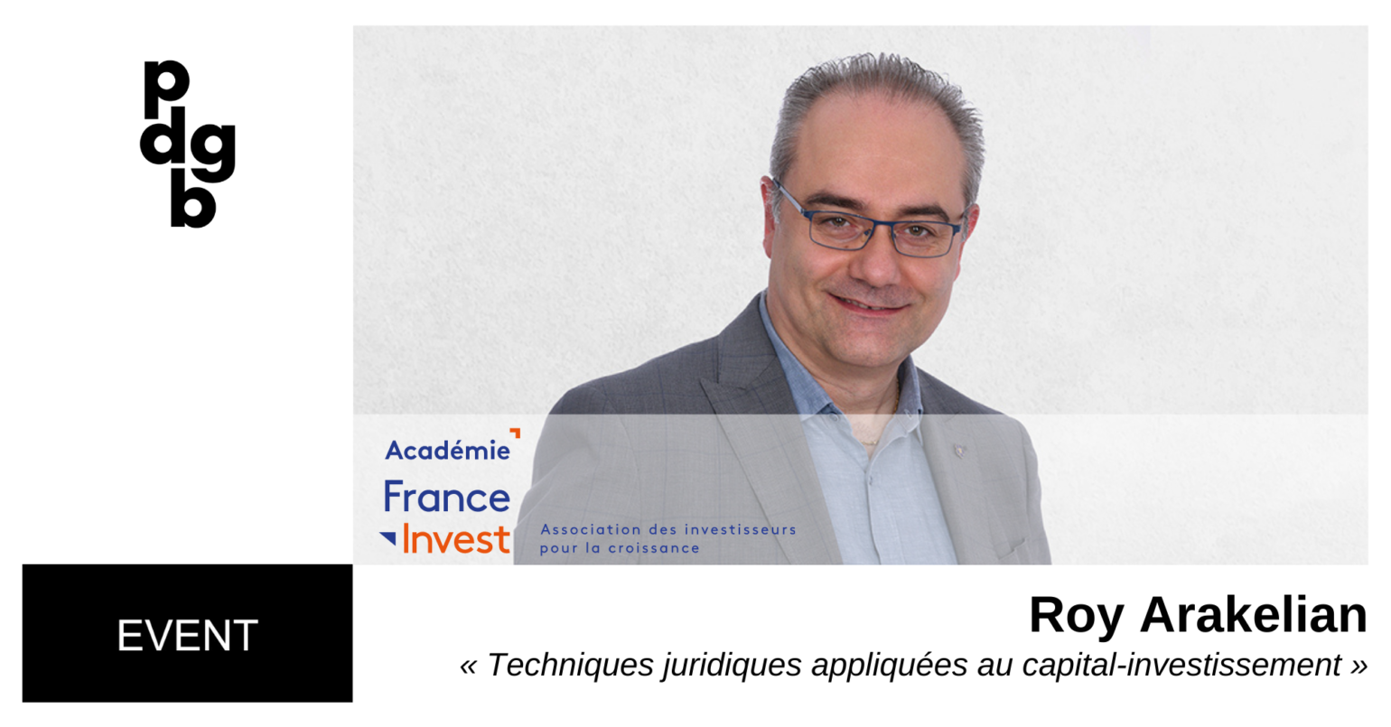 Roy Arakelian, associé PDGB, participe à la formation de l’Académie France Invest « Capital-investissement : fondamentaux, techniques et pratiques ». Il intervient sur le sujet des « Techniques juridiques appliquées au capital-investissement ».